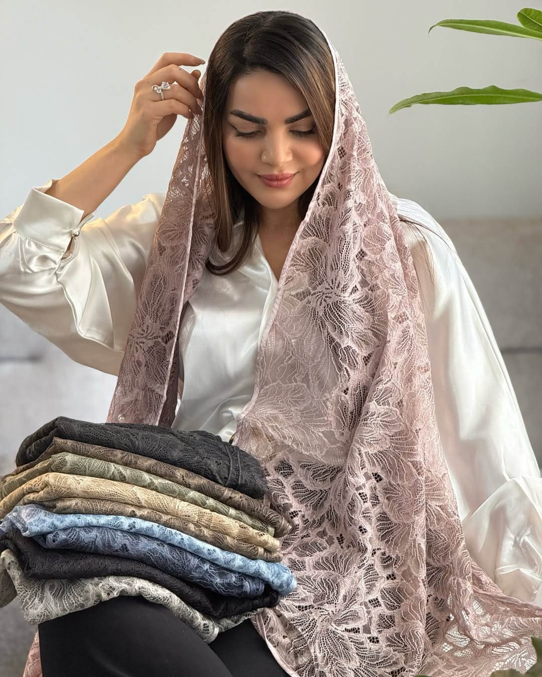 شال حریر دور دانتل
